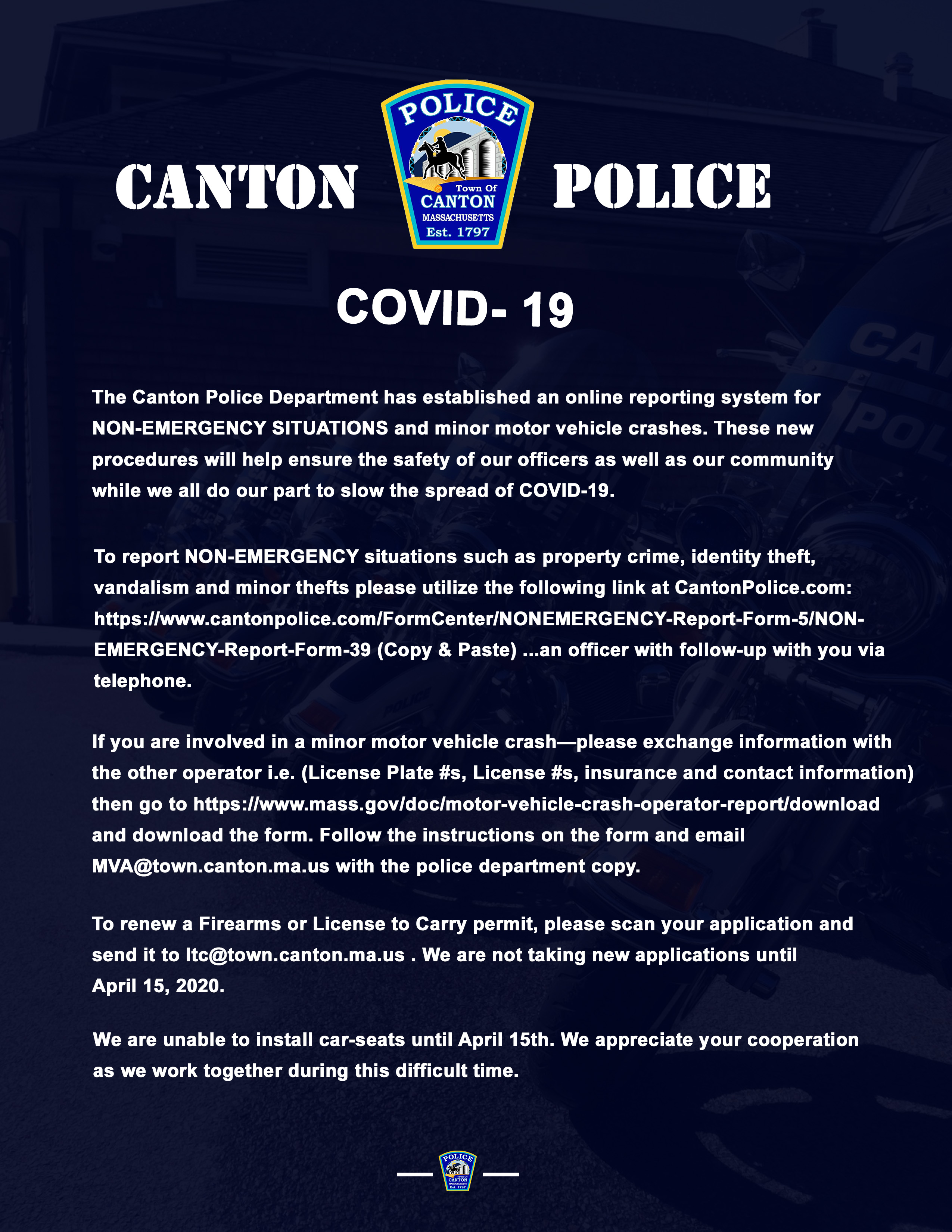 Canton Police On Twitter Canton Police Are Issuing New Guidance In Regards To The Reporting Of Non Emergency Situations And Clerical Interactions To Safeguard The Health Of Our Community And Our Personnel